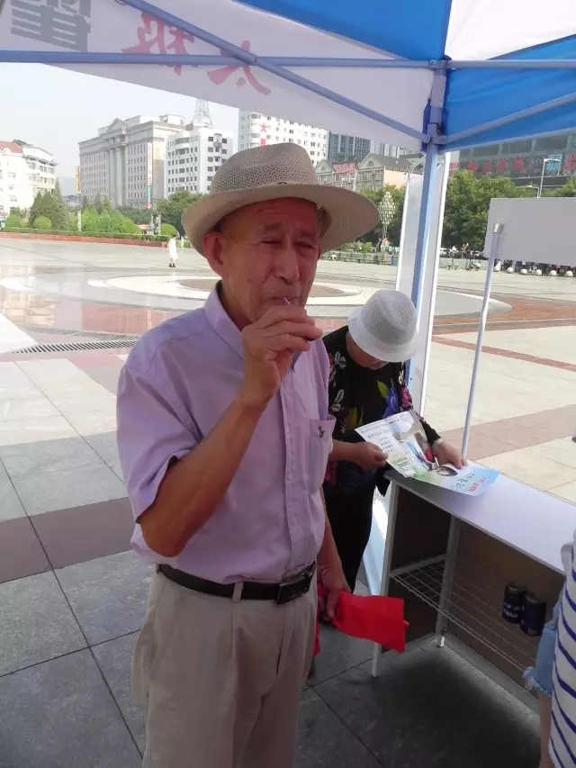 圖為:市民在現(xiàn)場免費(fèi)品嘗山西同仁康大藥房提供的太極藿香正氣口服液